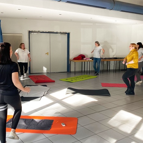 In den Räumlichkeiten der Gustav – Edelhoff – Halle in Iserlohn wurden die Teilnehmenden im Rahmen eines Gesundheitstriathlons theoretisch und praktisch in den drei Disziplinen Nordic Walking, Gesunder Pausensnack und Fitness beraten.
